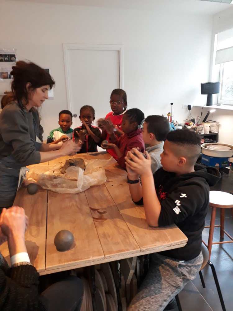 Samedi 21 janvier 2023, nous avons reçu les enfants de la maison du Haut Pantin, accompagnés par leur animatrice, Laure. Au programme, une visite pédagogique de l’atelier, une démonstration de tournage et un atelier de fabrication de bol au pincé. Un bon moment!